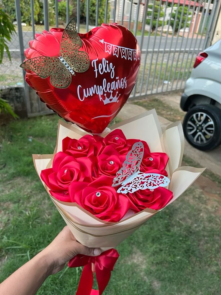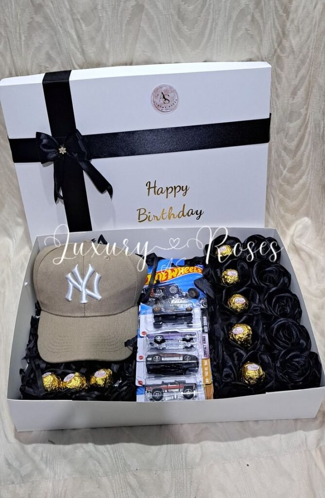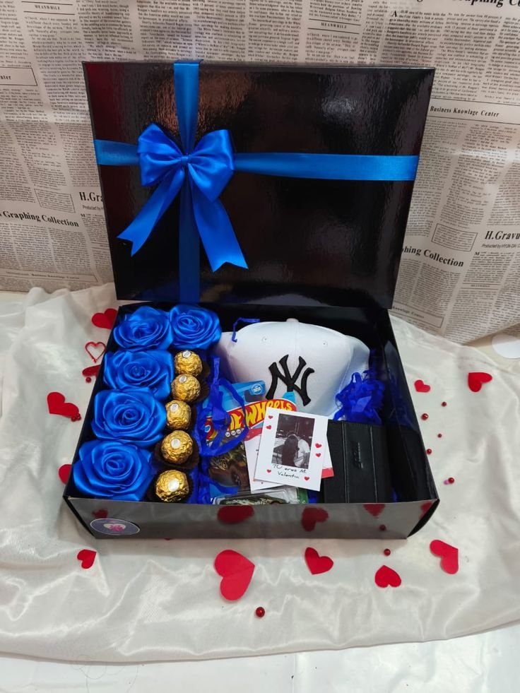 5 rosas + chocolate + 1 gorra + 1 billetera + 1 carro HotWheels + 2 tarjetas
